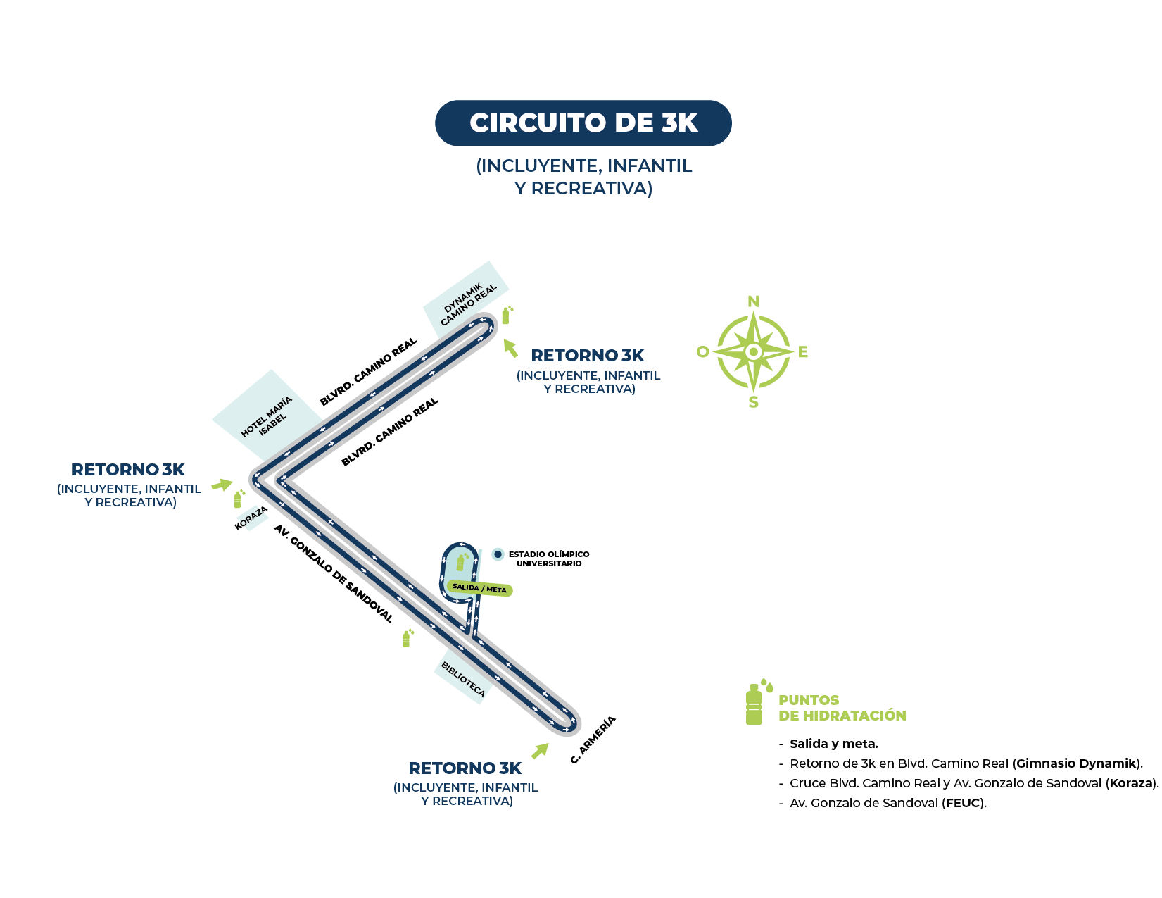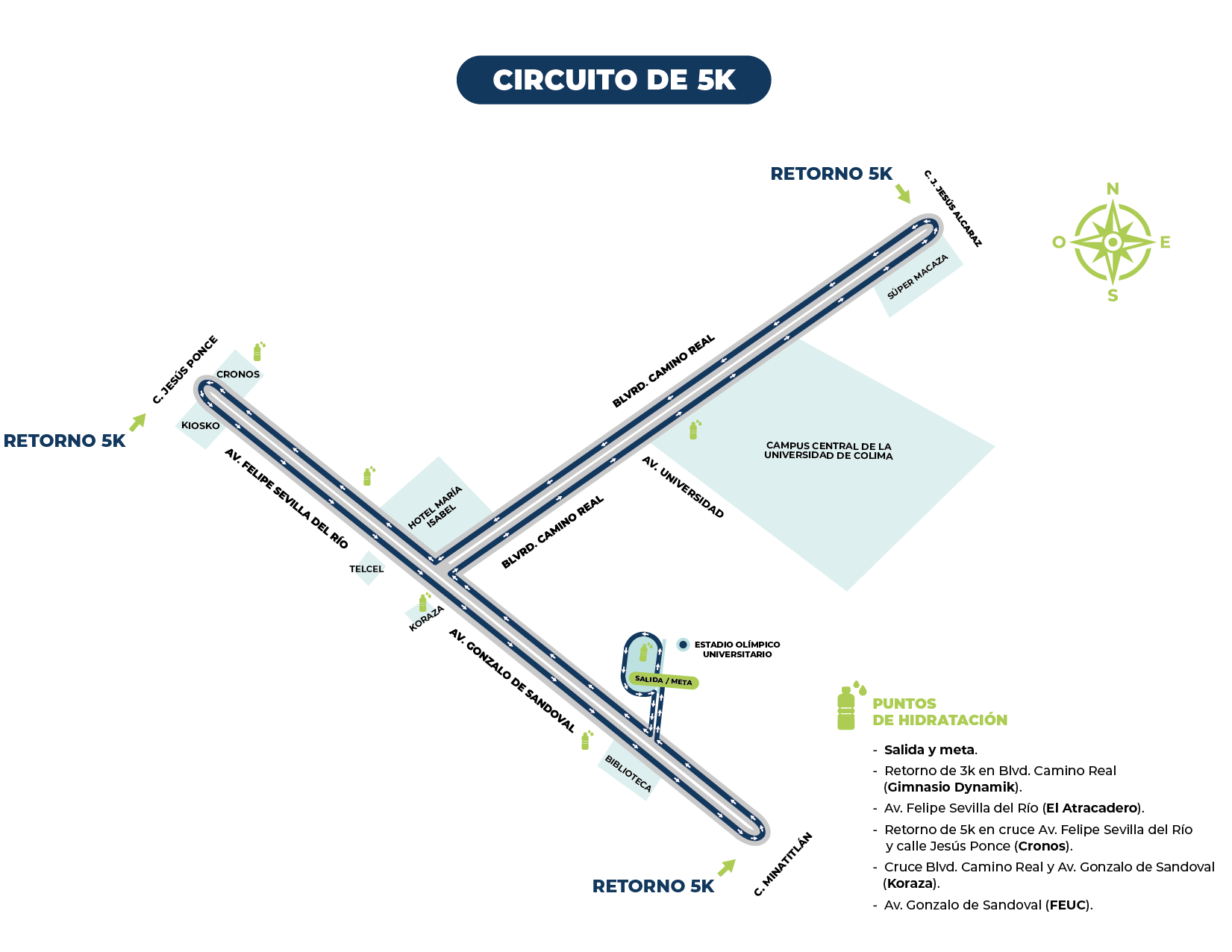 Consulta la ruta que harás de acuerdo a la distancia en la cual te registraste para la Carrera FEUC-UDEC.
